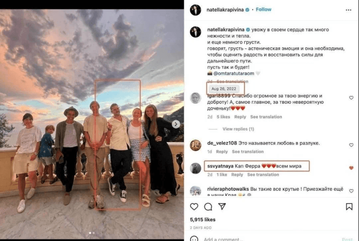 Кочетков обратил внимание, что 24 августа Токарев пожаловался в Facebook, что не может пройти по Крещатику вживую. Его компания Reface даже презентовала решение для виртуальных прогулок главной улицей Киева. А следом в Инстаграме появилось фото с Кап Ферра, на котором в окружении "артистических друзей" аналитик узнал Токарева. Его опубликовала одна из девушек, сопровождавших Токарева во Франции.
