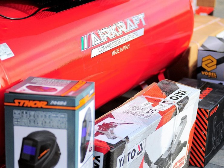 На этот раз 45-я бригада получила от "Руха" оборудование для балансировки колес, шиномонтаж, компрессоры, аккумуляторы для зарядки, инструменты, отбивные молотки и прочее.