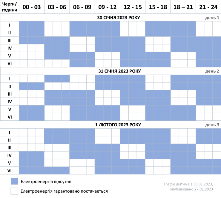 Сообщается, что график рассчитан на схему "6 через 3". Шесть часов жители региона будут без электричества, а три — со светом.