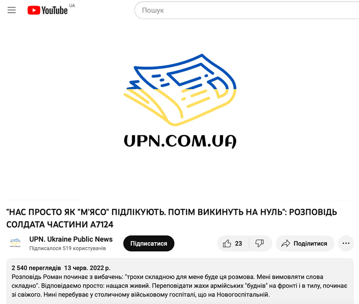 Фокус нашел онлайн-издание и ютуб-канал с таким названием. Автор публиковал видео, в которых разные люди рассказывают об отсутствии подготовки мобилизованных парней в Украине. В одном из видео мужской голос сравнивает бойцов ВСУ с мясом. Его представляют как находящегося в госпитале раненого солдата, однако фото или видео с его лицом отсутствуют.