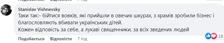 В комментариях фолловеры предположили, что архимандрит Антоний намекнул на священников ПЦУ, выразив сравнение с "волками", а своих верующих сравнил со "стадом". Служители Московской церкви активно выступают против того, чтобы терять влияние на украинское общество из-за религии.