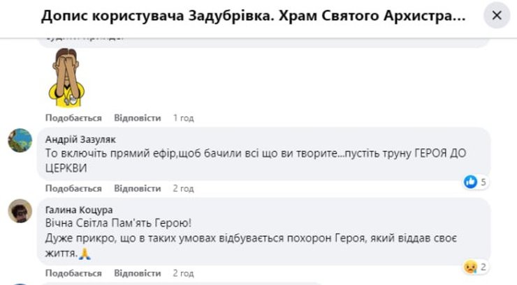 "Так включите прямой эфир, чтобы все видели, что вы творите... пустите гроб Героя в церковь!", — написал в комментарии Андрей Зазуляк.