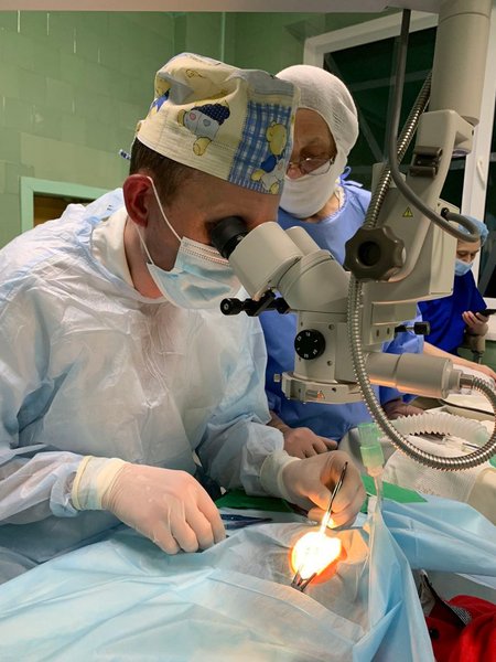 Врач-офтальмолог больницы провел одномоментную микрохирургическую обработку проникающего ранения с вправлением радужки и наложением микрошвов. Оперативное вмешательство было выполнено с использованием операционного микроскопа и под общим обезболиванием.