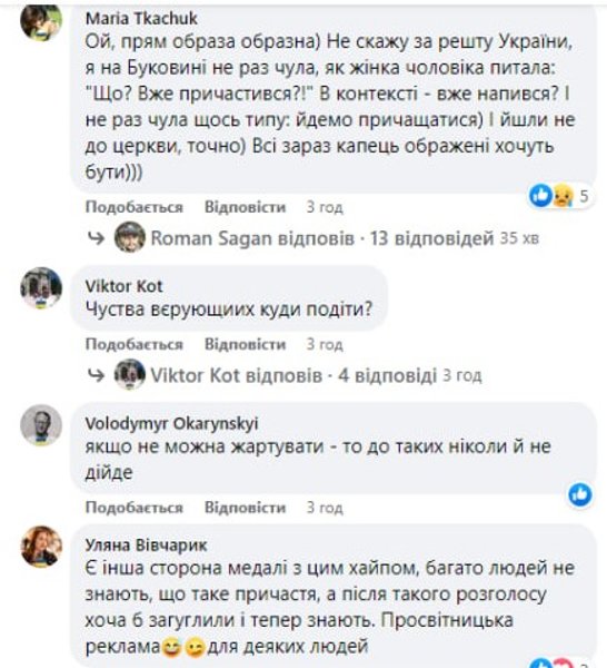 "С галичанами нельзя тонко шутить, особенно на тему религии. "Все для причастия" на магазине алкоголя — это святотатство было. Но это прекрасно. П.с. буду прямой, и не играть в праведную галичанку. Очень большое количество религиозных людей, которые исповедуются и причащаются перед Пасхой, потому что так положено, потом заливаются водкой, потому что праздник же", — написала она.