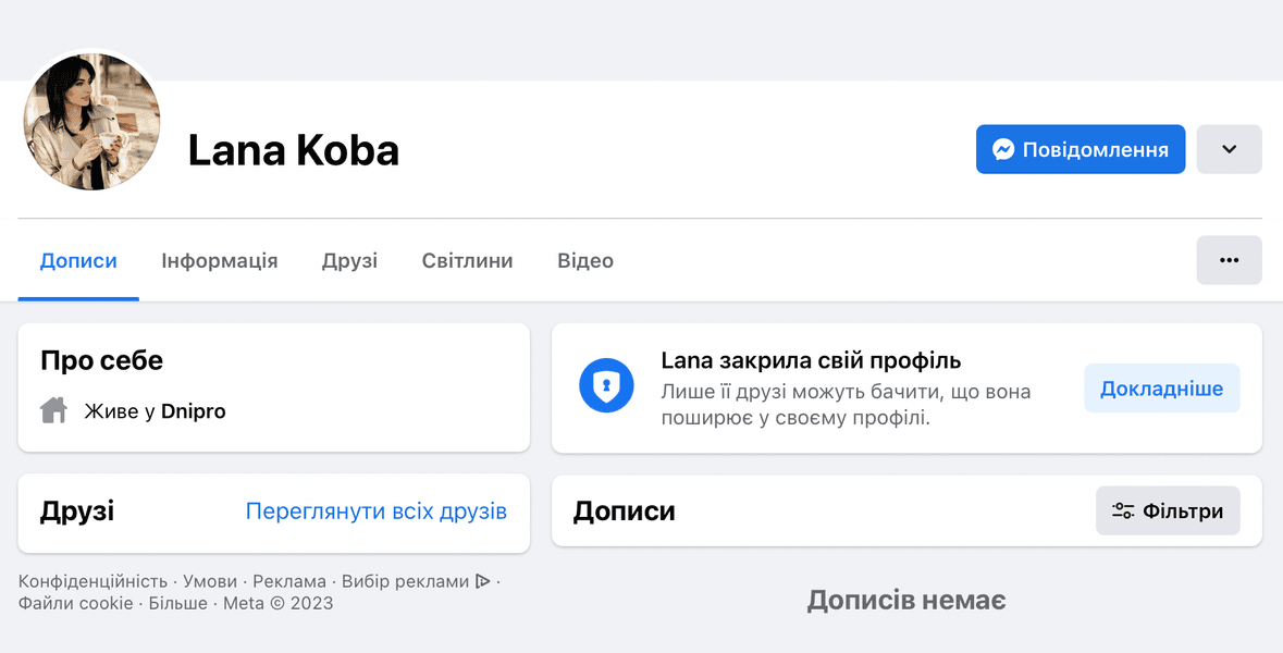 Пострадавшая опубликовала ссылку на профиль Людмилы, однако на момент публикации материала страница удалена. В Facebook есть аккаунт, данные которого (фото, город и имя) совпадают с данными удаленной записи в Instagram. Однако связаться через него с женщиной невозможно, ведь страница не публичная.