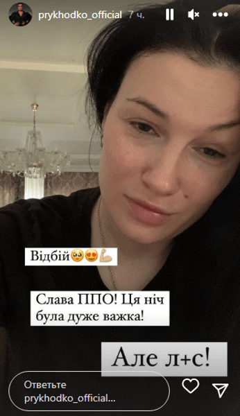 "Отбой! Слава ПВО! Эта ночь была очень тяжелой", — отметила певица.