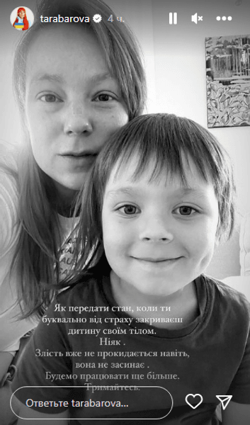 Певица рассказала, что ночью необычайно перепугалась. Тарабарова закрывала собой ребенка, ведь взрывы были очень мощными. Однако после таких циничных обстрелов артистке хочется еще более настойчиво помогать ВСУ, чтобы выгнать российских оккупантов с украинских земель.