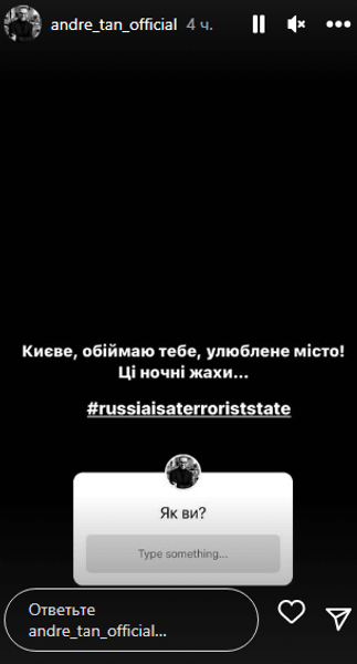 "Киев, обнимаю, любимый город! Эти ночные ужасы…", — возмутился Тан.