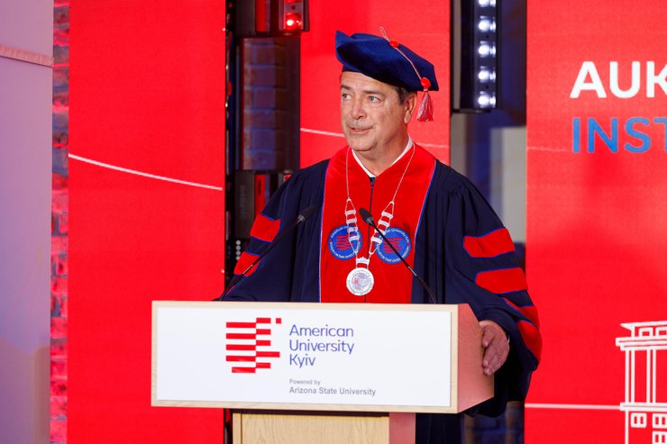Приветствуя AmericanUniversityKyiv у его кампусов РечПорта, Министр образования и науки Украины Оксен Лесной подчеркнул: "Это очень смелый поступок инвестировать в страну, в которой идет война: самая мощная, самая сложная война за последние 80 лет. Я убежден, что к этому решению вас побудила вера в необратимость цивилизационного выбора украинцев. Я убежден, что именно образование приведет нас к окончательной победе. В этом большой символ веры мира в Украину".