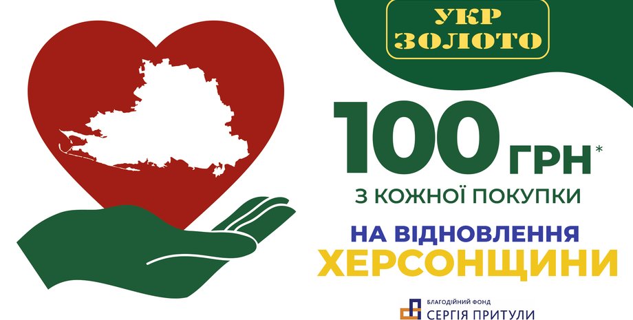 Через несколько недель спадет вода и возникнет новая проблема – восстановление Херсонщины. После столь масштабной трагедии оно требует много времени, ресурсов и совместных усилий. Понимая, что масштабы разрушений будут огромными, Укрзолото стремится приобщиться к восстановлению пострадавшего региона. Поэтому сеть запускает благотворительную акцию: с каждой продажи ювелирных изделий 100 гривен будут отчисляться на помощь. В период с 10 по 30 июня покупая любое украшение в сети, каждый может присоединиться к восстановлению Херсонского края. Все собранные средства Укрзолото перечислит Благотворительному фонду Сергея Притулы, которые будут направлены на восстановление инфраструктуры пострадавших регионов и разрушенных домов.