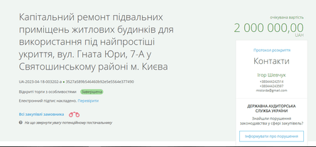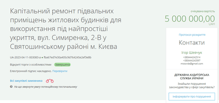 Николов привел в пример несколько тендеров. Так, журналист обратил внимание, что на улице Иоанна Павла II, 19. провели закупку на капитальный ремонт подвальных помещений итоговой стоимостью почти в 2 млн грн.
