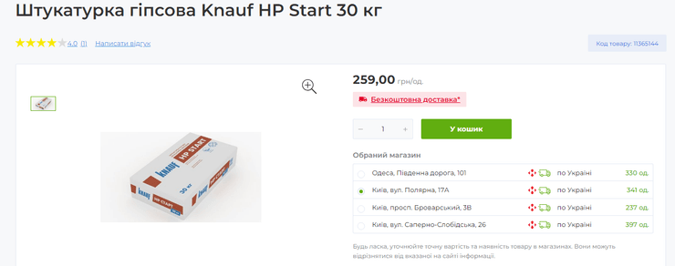 Кроме того, согласно смете, Управление строительства, архитектуры и землепользования Святошинской районной Киевской госадминистрации готово заплатить за штукатурку Knauf по 13,80 за килограмм без НДС, что также превышает рыночную цену.