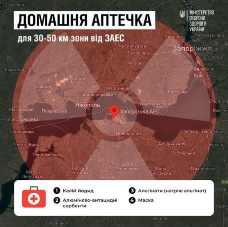 Таблетки употреблять не надо: в Минздраве озвучили алгоритм действий в случае подрыва Запорожской АЭС (карта)