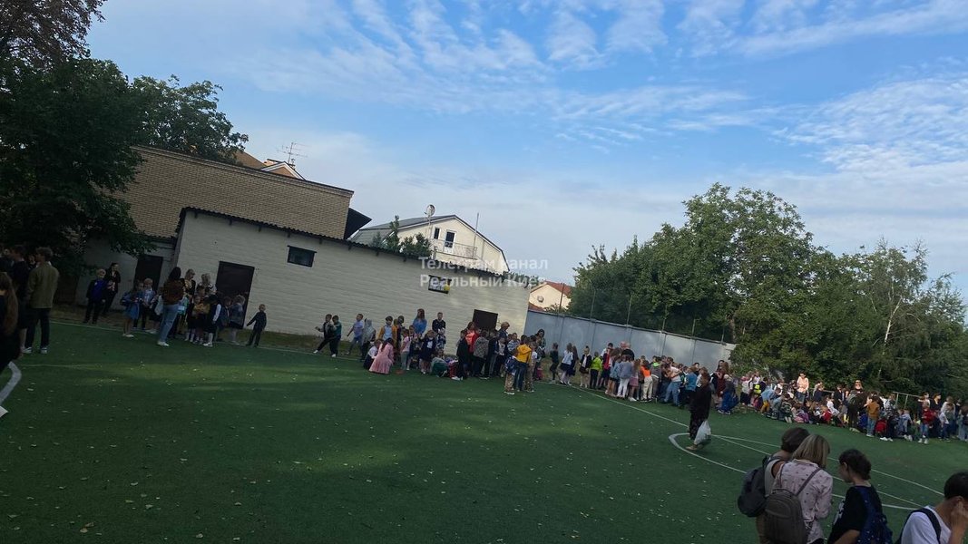 Авторы контента опубликовали снимки с толпой школьников, которые ждут на спортивном поле.