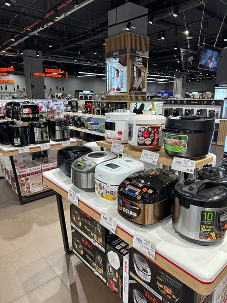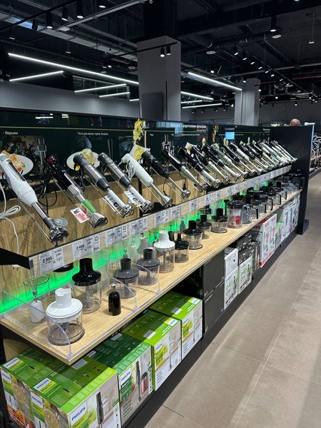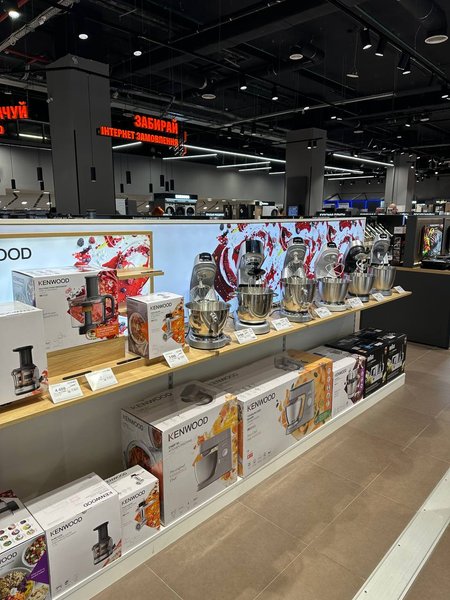 В торговом зале акцент сделан на популярные инновационные товары, которые в любое время можно протестировать на бренд-зонах известных техногигантов: Delonghi, Samsung, LG, Electrolux, Philips, Sony, Whirlpool, Bosch и другие. Вдобавок, покупатели могут оплатить до 99% стоимости товаров своими старыми гаджетами, благодаря сервису Фокси Обмен.
