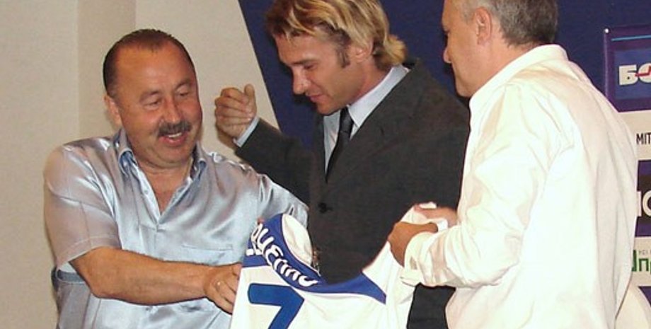 После этих слов под аплодисменты собравшихся в конференц-зале стадина "Динамо" журналистов и болельщиков команды Шевченко получил из рук Суркиса футболку с номером "7" на спине и фамилией "Шевченко".