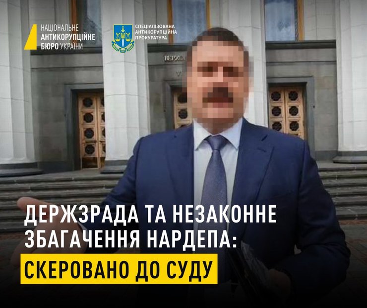 НАБУ и САП отправили в суд дело экс-депутата, которого обвиняют в госизмене и незаконном обогащении. Об этом 29 ноября сообщили в пресс-службе Национального антикоррупционного бюро Украины.