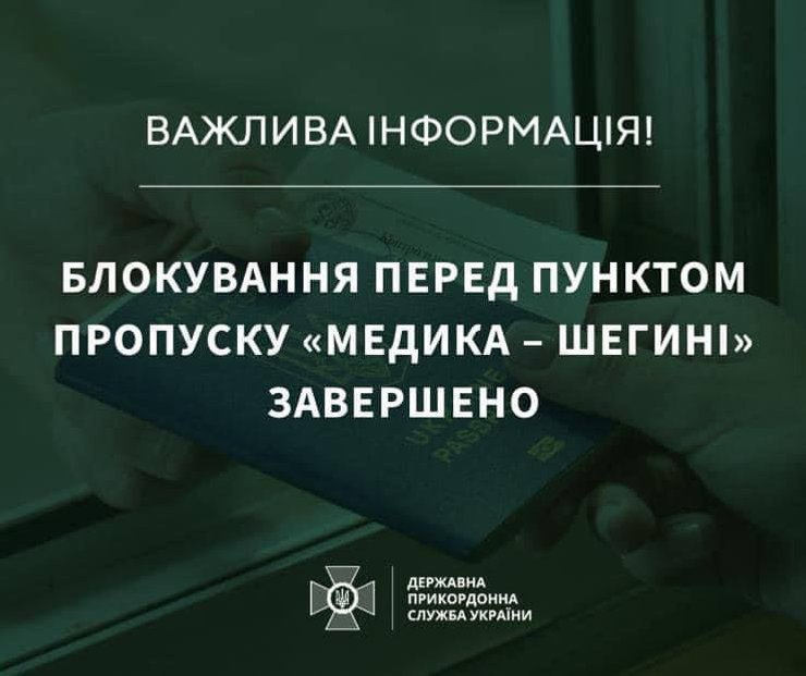 "Официально! Движение грузовиков восстановлено: польские фермеры завершили блокирование перед пунктом пропуска "Медика — Шегини". Сегодня в 21:00 завершилась акция протеста перед пунктом пропуска (по информации от Пограничной стражи Республики Польша). Оформление и пропуск через границу грузовых транспортных средств в направлении въезда в Украину осуществляется в обычном режиме", — говорится в сообщении.