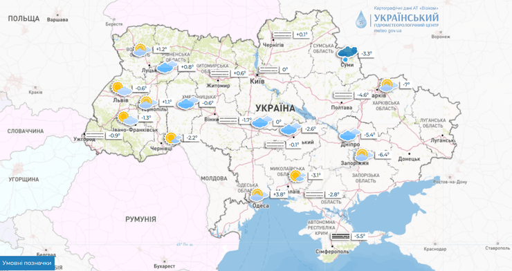 В четверг, 25 января, на территории Украины ожидается повышение температуры — от -1 до +5 градусов в течение суток. В восточных областях нашего государства несколько прохладнее, в частности, от 2–7 мороза.