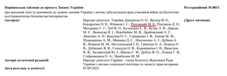 Отметим, что согласно информации в сравнительной таблице к проекту закона Украины "О внесении изменений и дополнений в некоторые законы Украины с целью обеспечения прав участников войны на биологическое отцовство/материнство", одним из его авторов является народный депутат Михаил Радуцкий.