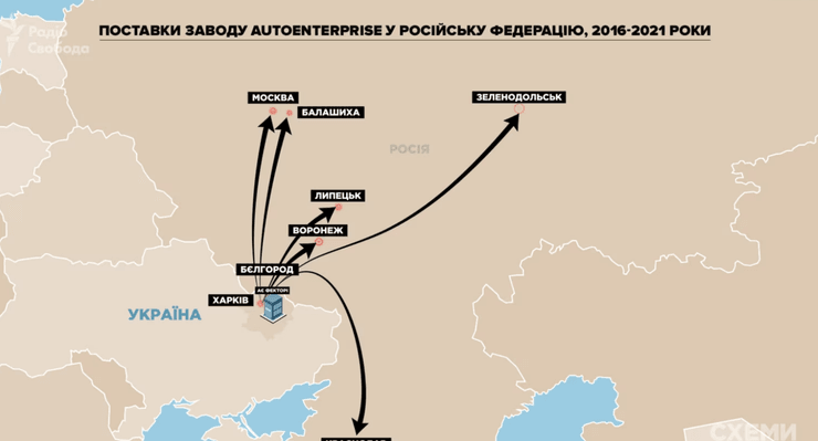 Компания "АЕ Фектори" из группы Autoenterprise занималась поставками оборудования из Харькова в Россию. Продажи зафиксировали в Липецк, Воронеж, Балашиху, Белгород, Краснодар, Москву, Зеленодольск.