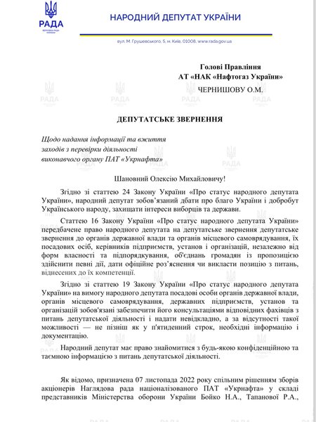 Народный депутат требует от "Нафтогаза" разобраться с нарушениями в "Укрнафте", — СМИ