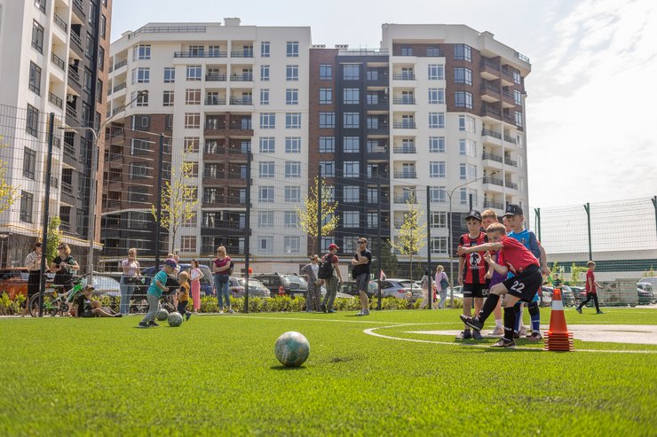 На футбольному полі відбувся перший товариський матч між дитячими командами "Академія ім. О. Алієва" м. Буча та "Lions" м. Ірпінь. Обидві команди отримали в подарунок від забудовника футбольні м’ячі. Після гри всі бажаючі діти змогли спробувати себе у футболі та долучитись до ігрових активностей з тренером з великим ігровим досвідом — Дмитром Момотенком. Дмитро — вихованець футбольного клубу "Динамо" Київ. Грав за дублюючий склад Дніпра, Чорноморця, Зірки, Титану, Дністра, Вінницької Ниви тощо.