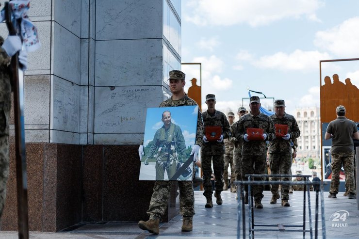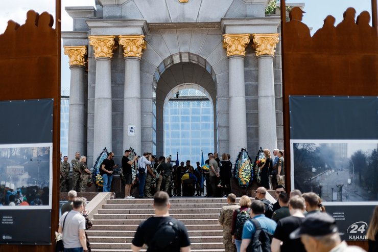 Как информирует "24 канал", публичная часть церемонии прощания началась в 11:30 в Михайловском Златоверхом монастыре на Михайловской площади в Киеве. После этого процессия двинулась к Майдану Независимости. С Майдана колонна отправилась на Лукьяновское военное кладбище, на аллею военных Героев.