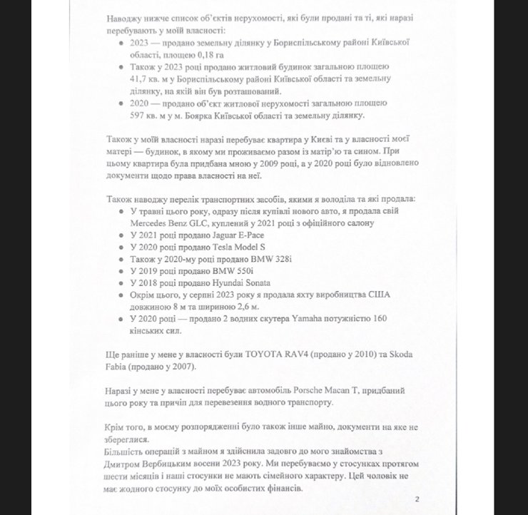 Кристина Ильницкая утверждает, что большинство операций с имуществом осуществила задолго до знакомства с Дмитрием Вербицким осенью 2023 года. Они находятся в отношениях 6 месяцев и их отношения "не имеют семейного характера": "Этот человек не имеет никакого отношения к моим личным финансам", — отмечает автор.