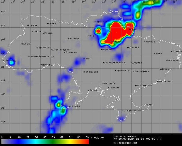 По словам Диденко, дожди с грозами вероятны на северо-востоке — в Полтавской, Харьковской и Сумской областях. Осадков стоит ждать вечером. По данным Гидрометцентра, также кратковременный дождь с грозой не исключен местами на Закарпатье.