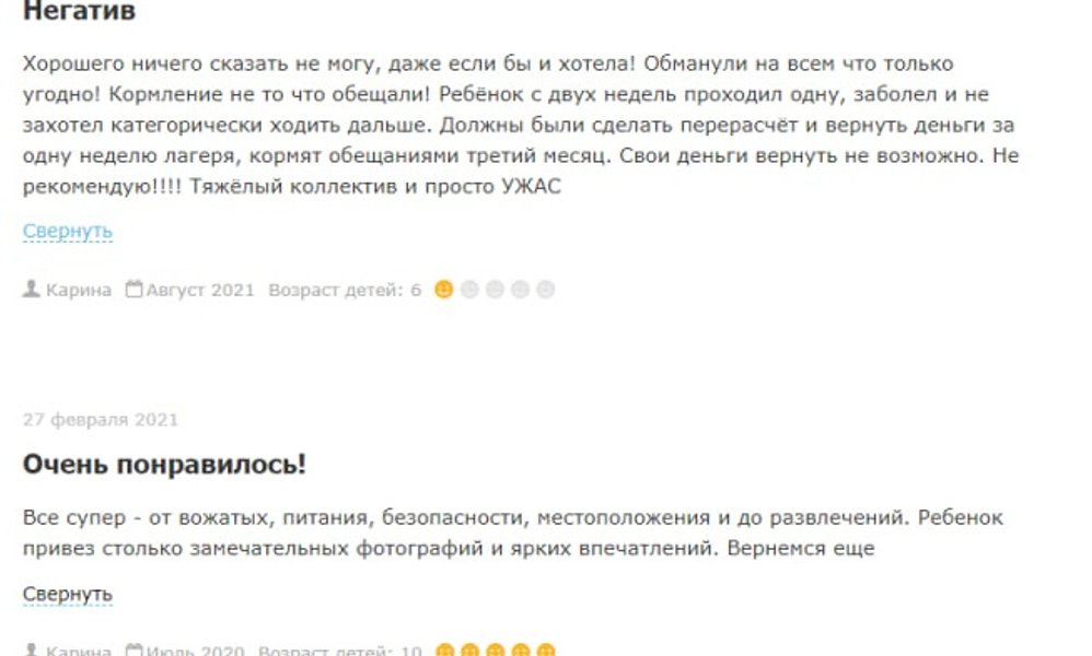 Менеджеры компании уверяли, что дети будут жить в хороших условиях, будут иметь полноценное питание и интересную программу. Но и родители, и дети рассказывают, что отдых, который обещали и который в итоге предложили — разные.