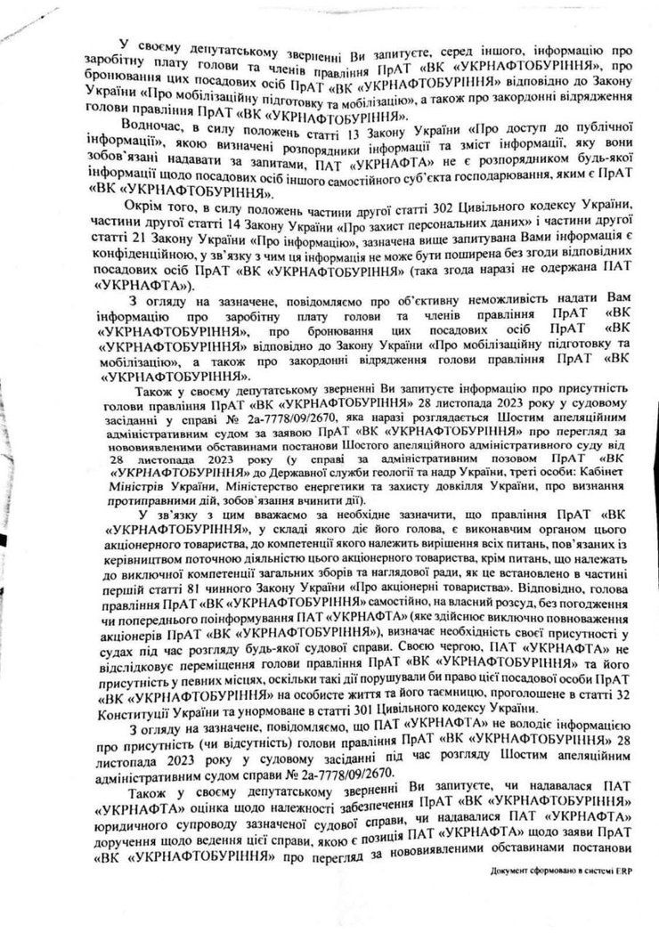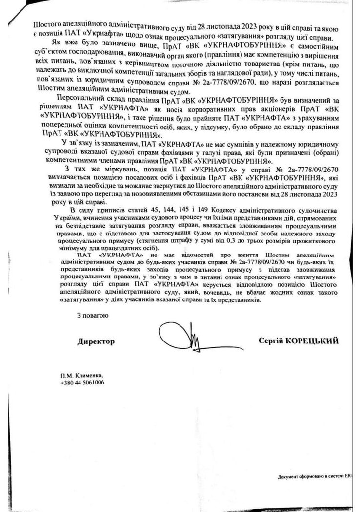 - предоставлялась ли "Укрнафтой" оценка юридического сопровождения со стороны УНБ указанного судебного дела, или поручение по его ведению?