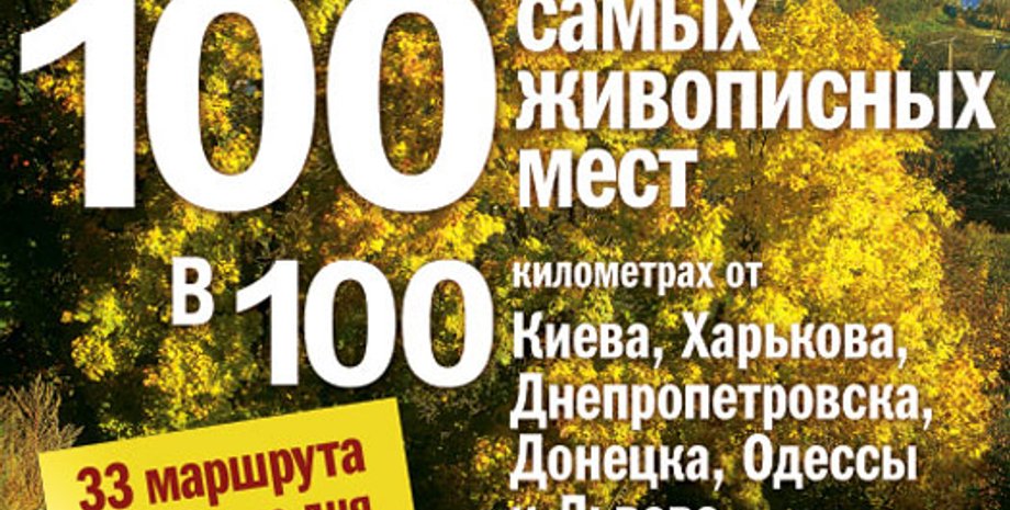 На этот раз мы сосредоточились на поиске интересных мест, расположенных не далее 100 км от шести крупных городов: Киева, Харькова, Днепропетровска, Донецка, Одессы и Львова. Таких мест мы нашли 100, причем три четверти из них не упоминались в предыдущих выпусках "Красивой страны". Любой из 33-х предлагаемых Фокусом маршрутов идеально подходит для короткого осеннего путешествия: каждый маршрут можно проехать за один день, а некоторые – и вовсе за несколько часов.