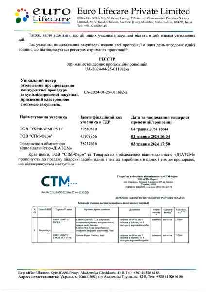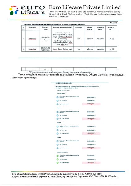 Журналисты пишут, что речь идет о лекарствах для онкобольных "Эверолимус" дозировкой 10 и 5 мг, индийской фармкомпании Натко Фарма Лимитед. В частности, тендерное предложение по "Эверолимус" (10 мг) составляло 182 583 600 грн против 358 995 360 грн следующего по стоимости предложения участника процедуры закупки. То есть экономия бюджетных средств могла бы составить 176 411 761 грн.