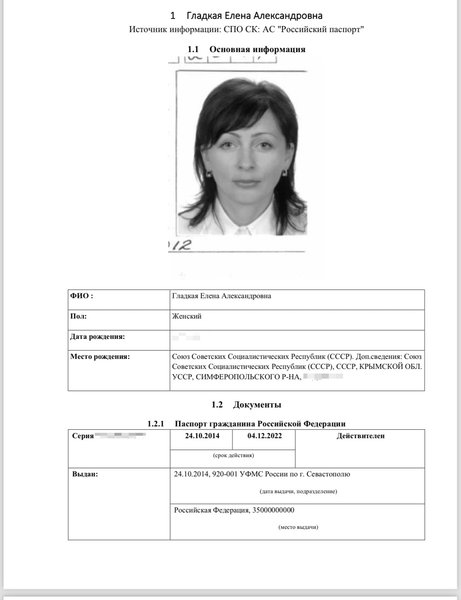 Елена Гладкая могла получить российский паспорт в Крыму в 2014 году. У документа уже истек срок действия.