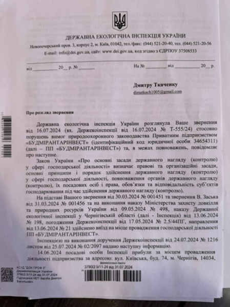 В распоряжении журналистов оказался и документ, в котором указывается сумма экологического ущерба, нанесенного озеру Земснаряд. По расчетам специалистов Государственной экологической инспекции Украины, эта сумма составляет более 216 миллионов гривен.
