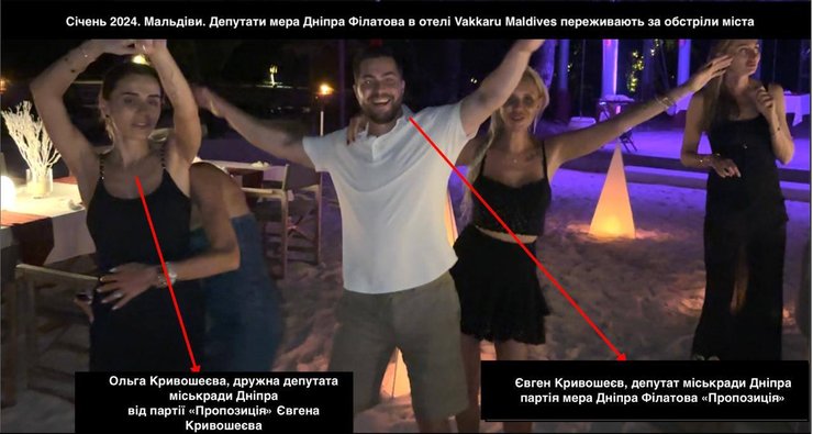 "Пока настоящие патриоты воюют, эти "герои" из команды Филатова поют патриотические песни, заедая омарами с просекко на лакшери курорте Vakkaru Maldives. Кстати, "командировки" им подписывал лично мэр", — отмечается в заметке.