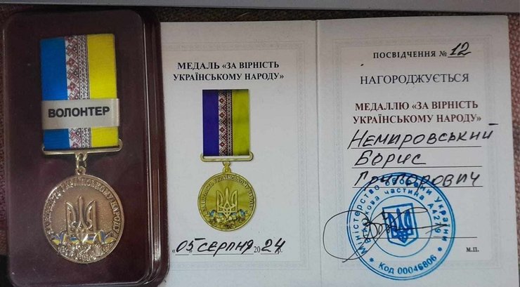 С 2015-го Борис Немировский посвятил себя волонтерской деятельности для Вооруженных сил Украины. Его работа не привязана к фонду или организации. За его вклад журналиста отметили несколькими наградами. В 2016 г. Борис стал, вероятно, самым первым иностранцем, который получил награду Министерства обороны Украины "Знак почета". В 2018-м его наградили медалью 58-й бригады "За верность присяге", а месяц назад — медалью 57-й бригады "За верность украинскому народу".