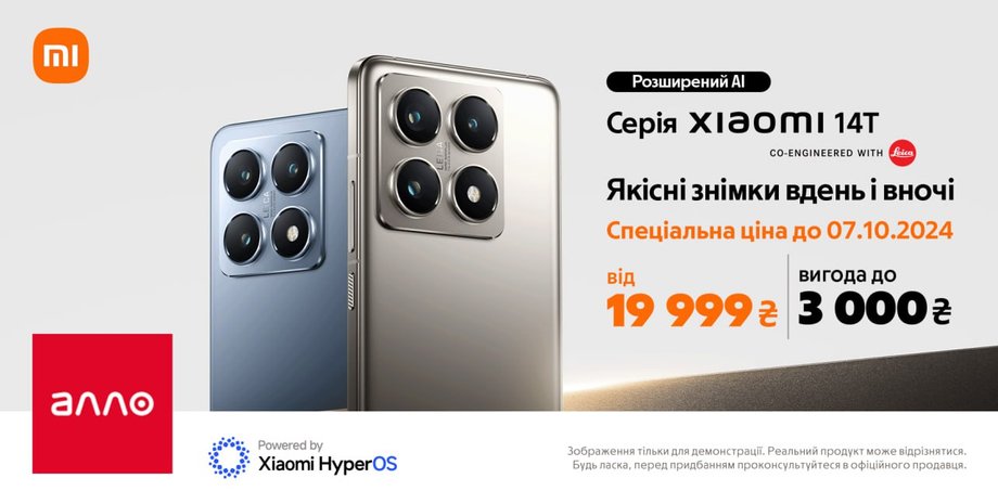 - Xiaomi 14T 12/512 ГБ — 21 999 ₴ вместо 23 999 ₴.