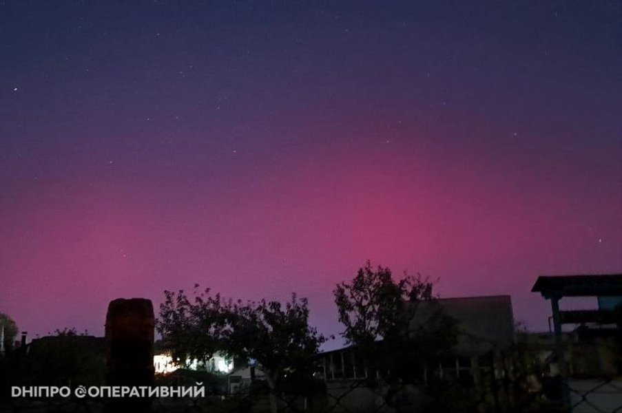 "Северное сияние сейчас наблюдается в Днепре и других городах Украины", — говорится в сообщении.