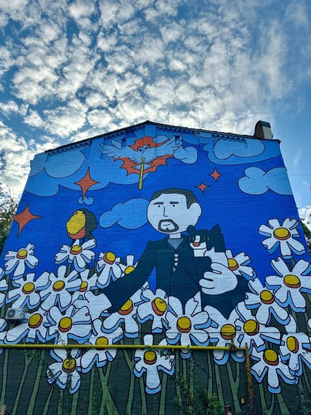 На улице Введенской, 6 в Подольском районе Киева появился масштабный мурал с главой ГУР МОУ, нарисованный стритарт-художницами сестрами Мишель и Николь Фельдман. Об этом информирует NV.