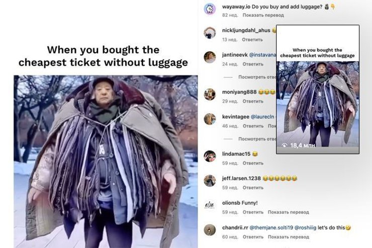 В Instagram для американського агрегатора WayAway я пожартувала, що, аби уникнути додаткової плати за багаж, вдягнула всі речі на себе. Цей жарт зібрав 18 мільйонів переглядів і привів понад 5000 нових підписників.