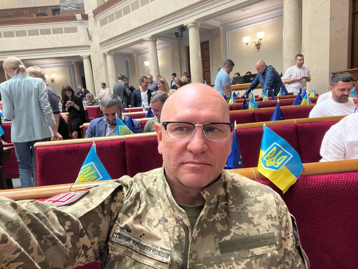 18 июля он пришел на заседание Верховной Рады в военной форме, но его коллеги этот жест не оценили, сделав замечание о нецелесообразности позирования в форме ВСУ в военное время.