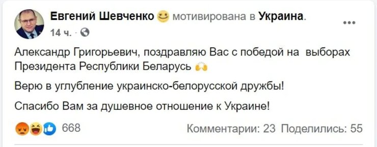 Перед тем, в августе 2020 года, Шевченко поздравил Лукашенко с победой в выборах.