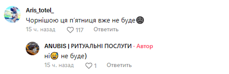 Ритуальное агентство в Черкассах сделало рекламную акцию к "Черной пятнице". Шуточный ролик под названием "1+1=3" местная похоронная служба выложила в соцсети Тик-Ток.