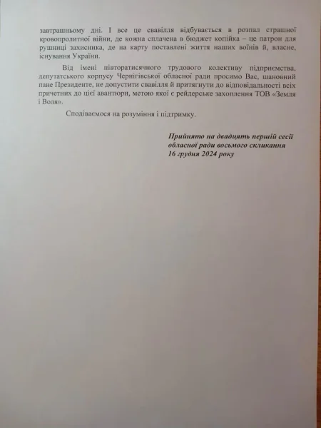 В обращении говорится о систематических попытках со стороны Приходько и связанных с ним структур рейдерским путем захватить предприятия, парализовать их работу, арестовать счета и имущество. Подобные действия во время войны недопустимы, ведь каждая копейка с налогов — это поддержка армии и тыла. Зато действия Приходько несут угрозу не только экономической стабильности региона, но и жизни тысяч людей, которые зависят от этих предприятий.