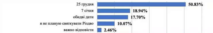 Несмотря на трудности, традиции остаются важными для людей. На вопрос о праздновании Рождества почти 51% респондентов ответили, что планируют отмечать его 25 декабря, в то время как 19% выбрали 7 января. Особенно интересно, что почти 18% опрошенных решили праздновать обе даты, что свидетельствует о стремлении украинцев найти баланс между традиционным и современным подходом к празднованиям.