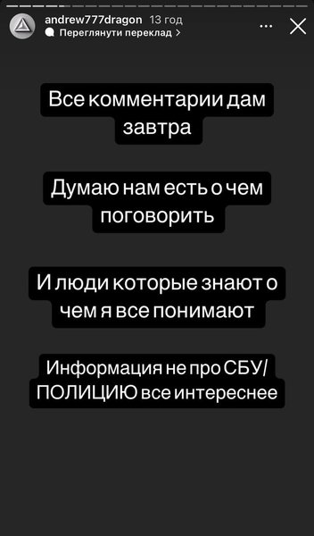 Парень опубликовал несколько дерзких историй, в которых обещает дать комментарий "одному очень большому изданию", в котором объяснит свои действия. Драган утверждает, что якобы действия полиции имеют заказной характер, а также к этому причастны сотрудники силовых структур. Он пообещал обнародовать заказчиков.