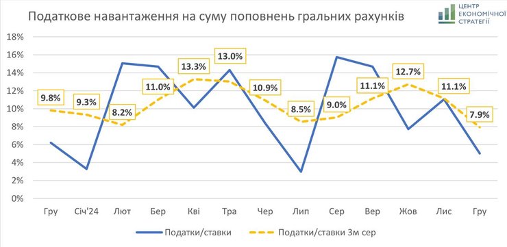 "Плохая новость — в целом уменьшилась налоговая нагрузка. Это в процентах к пополнениям (потому так как легальные пополнения растут, то и динамику по налогам вы видите больше). Но это означает, что схемы по уклонению остаются. Просто более сложные", — написал Железняк.