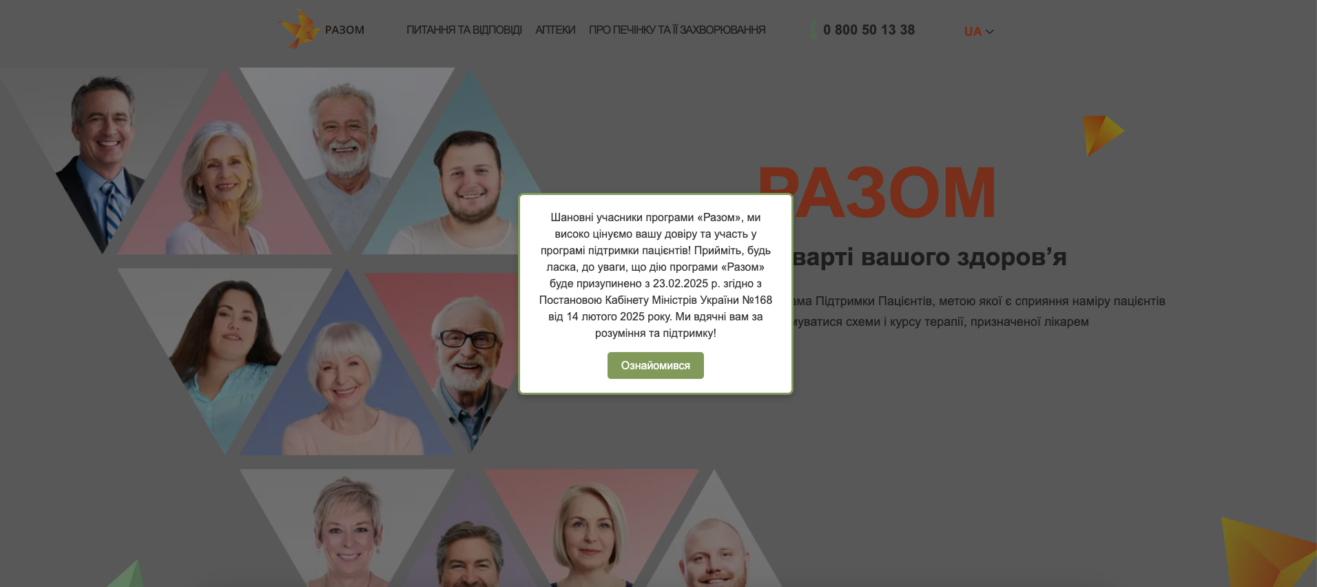 Примите, пожалуйста, во внимание, что действие программы "Разом" будет приостановлено с 23.02.2025 г. согласно Постановлению Кабинета Министров Украины №168 от 14 февраля 2025 года", — говорится в сообщении на сайте программы.